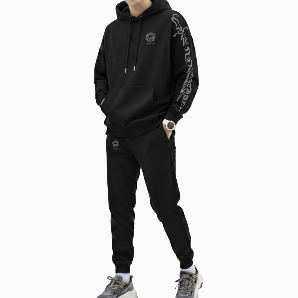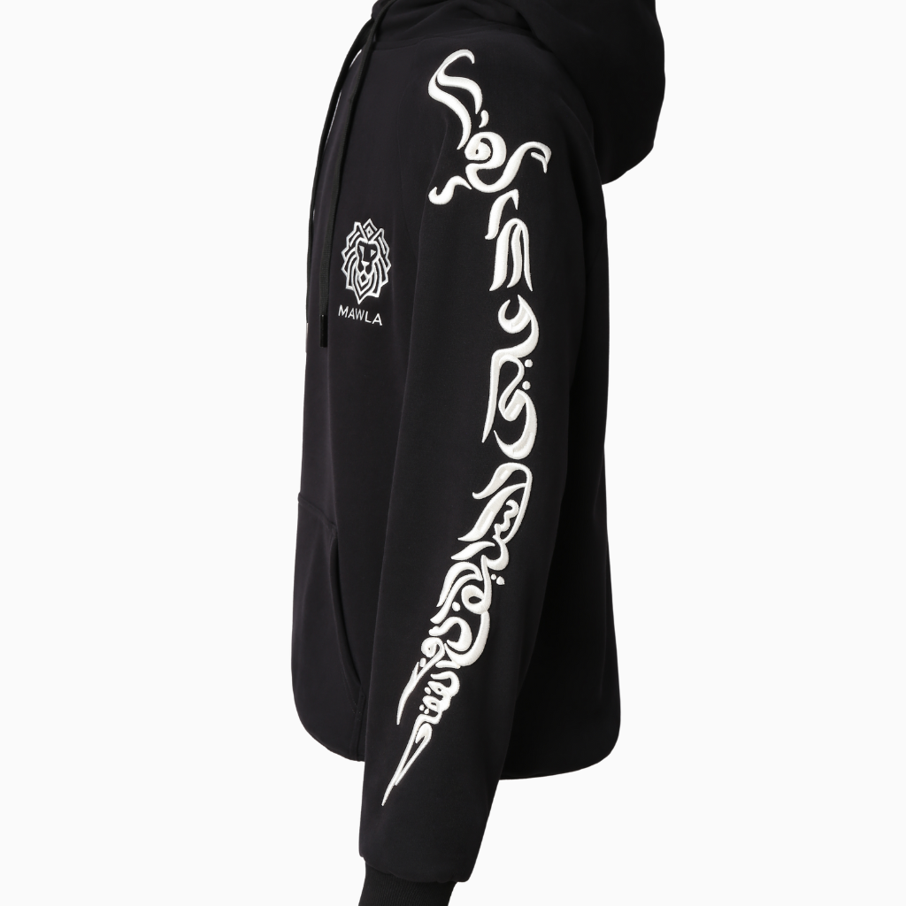 مزخرف بـ / منقوش بـ خط ذو الفقار مطرّز بتقنية ثلاثية الأبعاد على طول الكم، هذا الأسود ذو الفقار بدلة رياضية يكرم الإرث ويحييه. الـ شعار المولى فوق الصدر يثبت الإيمان والولاء والفخر — مما يجعله قطعة حقيقية من أزياء إسلامية عصرية.